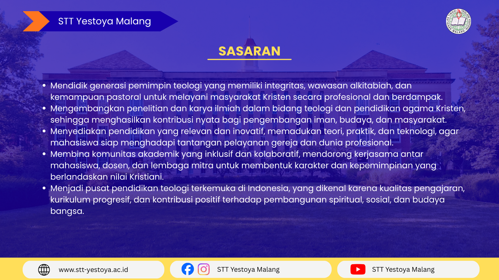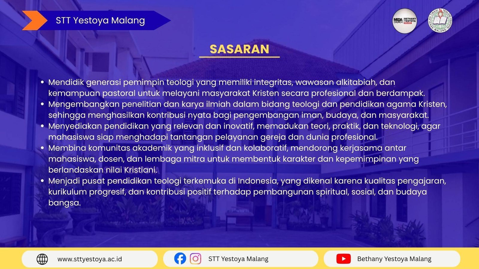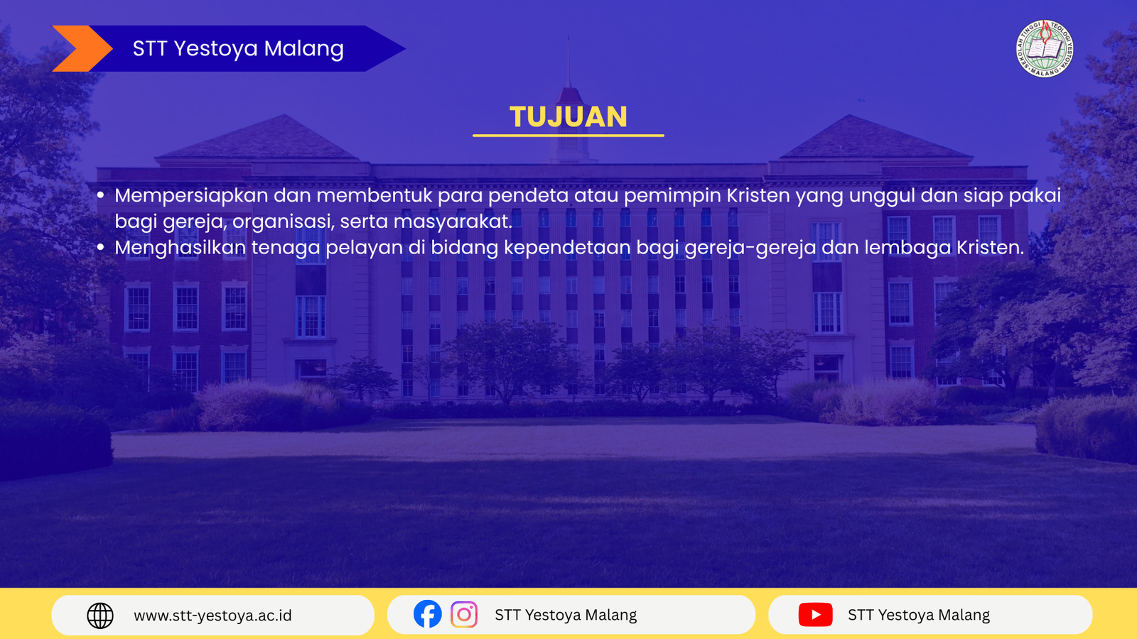 Membentuk pelayan Tuhan yang memiliki dasar teologi yang kuat dan siap melayani di berbagai bidang pelayanan gereja.