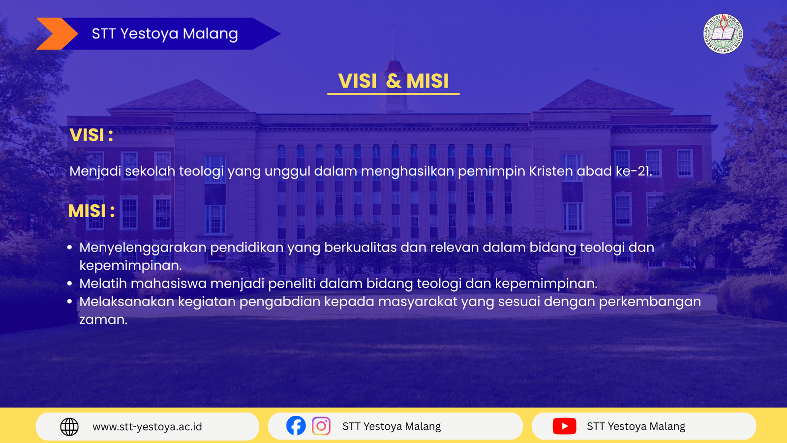 Kemahasiswaan di STT Yestoya merupakan bagian penting dari sistem pendidikan yang bertujuan membentuk mahasiswa yang tidak hanya unggul secara akademik, tetapi juga berkarakter, berintegritas, dan...